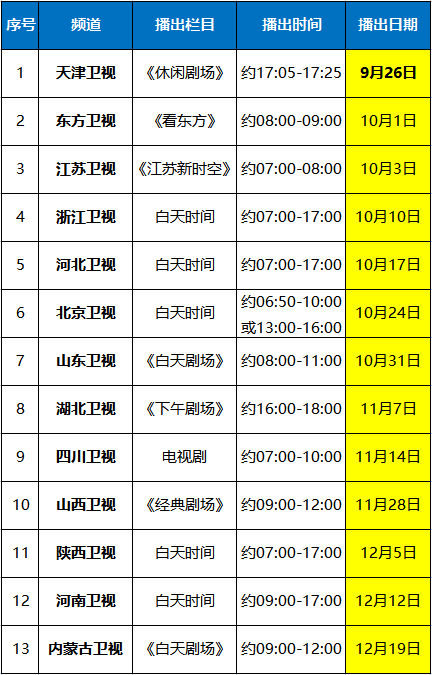 上面是第一階段衛(wèi)視廣告播出時間表,13套衛(wèi)視頻道陸續(xù)播出,敬請關(guān)注。