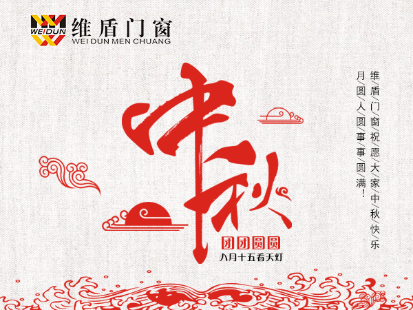中秋佳節月兒圓,家家戶戶喜連連,喝酒賞月人團圓,生意興隆財滿源!值此中秋佳節來臨之際,北京德信維盾門窗有限公司(以下簡稱“維盾門窗”)全體員工祝門窗行業人士和新老客戶中秋快樂,萬事如意!維盾門窗向所有關心、支持維盾門窗的各級領導和社會各界人士表示衷心的感謝!