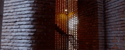 室內(nèi)所有光源都是自然光。隨著一天日照變換,陽(yáng)光透過(guò)天花板和墻面的空隙,在磚墻和地面上形成不同形狀的光斑,渾然天成又變幻莫測(cè),在未做任何裝飾的室內(nèi)創(chuàng)造出震撼的視覺(jué)效果。